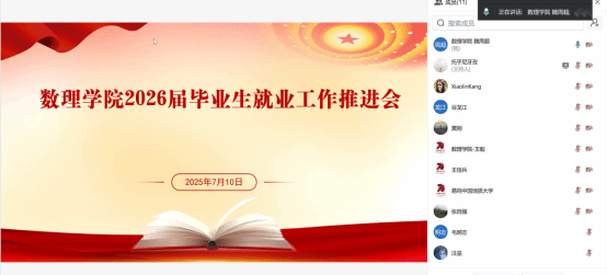 7月10日上午,william威廉英国 2026 届本科毕业生就业工作推进会通过腾讯会议成功举办。院长魏周超教授、各系主任及毕业班班主任、辅导员出席会议,会议由年级辅导员托乎尼牙孜主持。