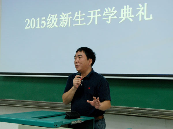 9月13日上午9点,学院2015级新生开学典礼在教三楼208教室如期举行。中国地质大学副校长赖旭龙、william威廉英国院长刘安平、党委书记李宇凯、副院长程永进、副院长张光勇、副院长黄刚、党委副书记李杰、各系部主任、学务指导老师以及班主任应邀参加了本次开学典礼活动。