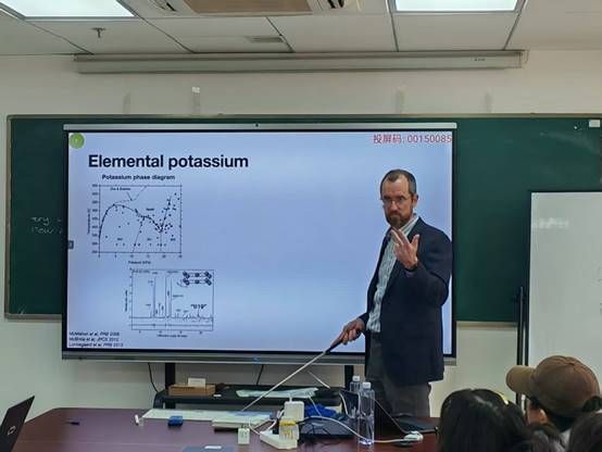 2025年12月2日下午, Andreas Hermann教授在东教楼1104学术报告厅为william威廉英国部分物理学专业和材料与化工专业的博士生、硕士生和青年教师作了题为“From DFT to thermodynamic modelling”的学术报告。报告以近期关于“同时具备固体与液体特征的新物态”的报道为切入点,系统阐述他们研究团队在高压物理与计算材料学领域的系列工作。Andreas Hermann教授从钾的高压相图与非共格宿主—客体结构详细阐述了“链熔融”作为一种热力学中间态的证据与机制,提出了碱金属高压相可作为部分电子化合物的观点,展示了如何利用机器学习分子动力学模拟预测相变、熔化线极值及热力学性质,介绍了基于Bragg-Williams模型的两态热力学理论,解释了金属熔化线中的临界行为。此外,Andreas Hermann教授还介绍了第一性原理计算在高压冰(VII–VIII–X)相变研究中的应用,探讨了隐藏临界点与相图拓扑等前沿问题,展望了机器学习在预测复杂材料行为方面的潜力。报告期间,Andreas Hermann教授与在场师生就高压相变机理、机器学习势函数开发等相关问题展开了深入讨论并细致回答了师生提问。