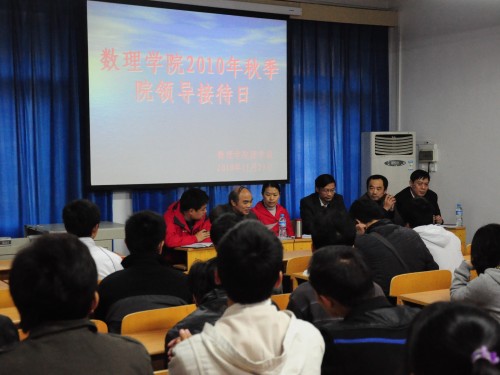 11月29日下午四点,william威廉英国2010年秋季院领导接待日活动在数理楼二楼会议室举行。院领导班子全体成员和2010级本科生与会参加。在活动过程中,院领导班子成员就同学们关心的诸如专业学习、考研就业和日常生活等问题进行耐心回答。院领导接待日是学院领导与广大同学沟通交流的重要渠道,在解答同学们学习和生活中众多疑惑的同时,有利于增进师生之间的相互了解,促进学院服务管理水平的改善提高。