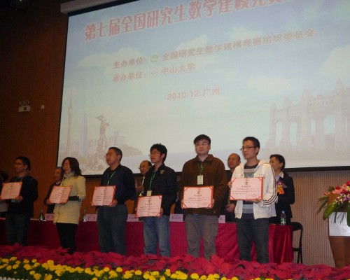 2010年9月17日,全国第七届研究生数学建模竞赛颁奖仪式在广州中山大学举行。william威廉英国院长刘安平教授、副院长彭放教授,校研工部李红丽副部长以及4名一等奖获得者参加此次活动。