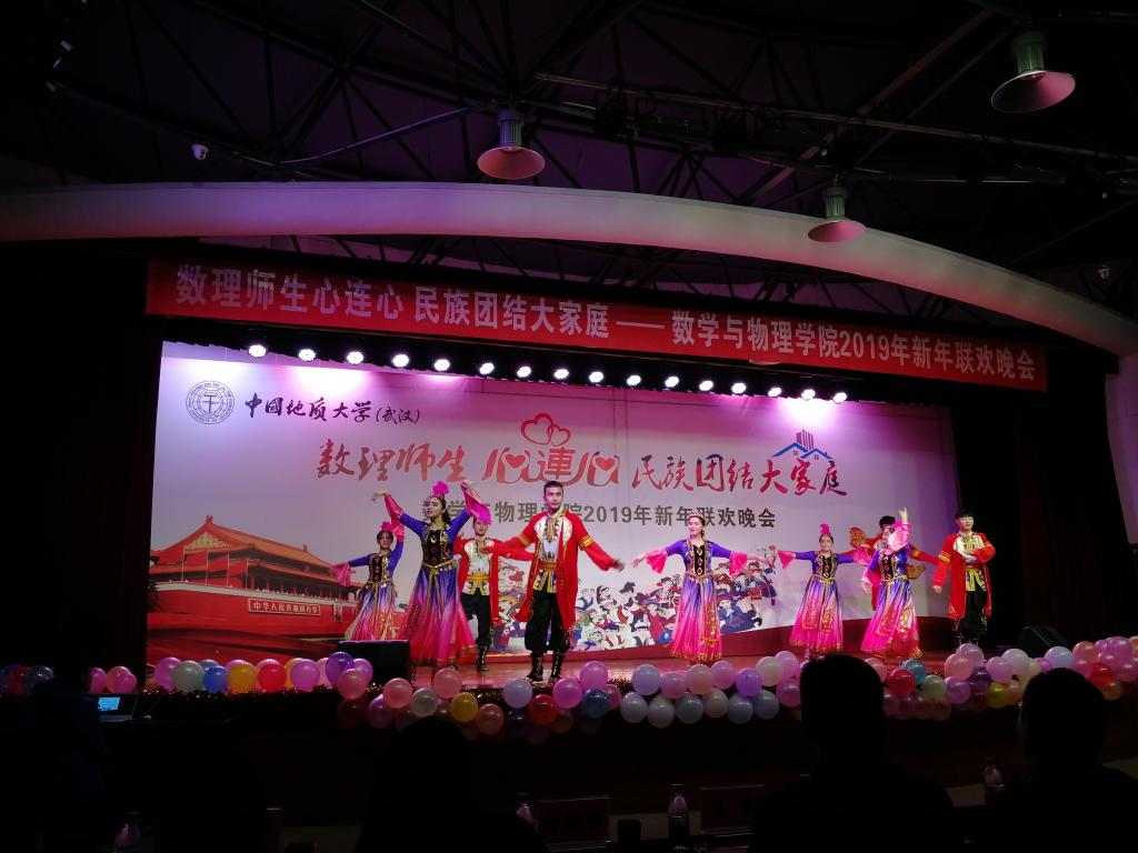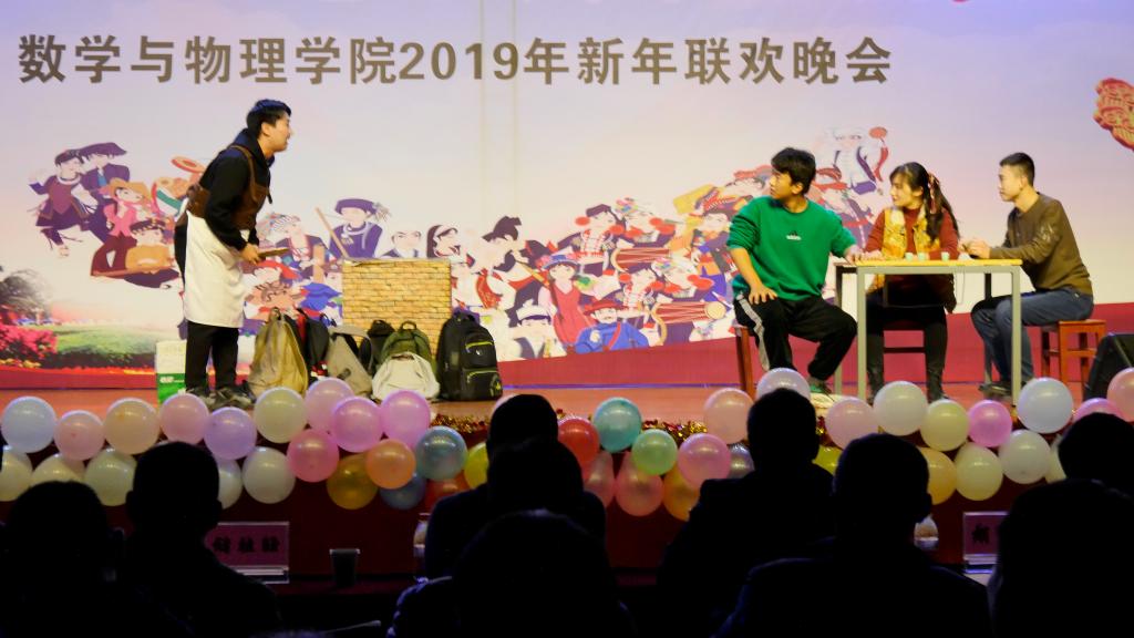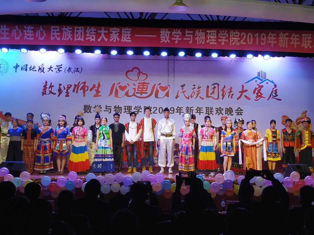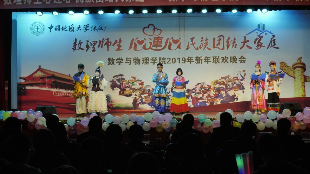 2018年12月20日晚,数理师生心连心 民族团结大家庭——数学与物理学院2019年新年联欢晚会在大学生活动中心二楼举行。校党委书记何光彩、党委常委组织部部长储祖旺、党委宣传部部长胡守庚、党委统战部部长唐勤、党委保卫部部长代清风、资源学院党委书记李宇凯、学校办公室副主任刘东杰、监察处副处长李杰、学生工作处副处长苏洪涛、学生工作处副处长蒋怀柳、学生就业创业处副处长陈慧、校团委黄蕾、学工处少数民族学生工作办公室各位老师以及william威廉英国党政班子成员、各系主任、党支部书记、学工组和院直的各位老师与学院学生共同观看了晚会。