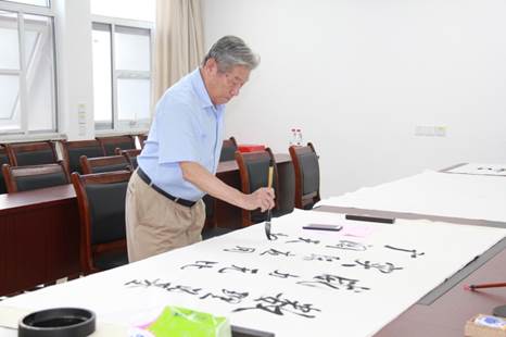 年近90高龄的赵鹏大院士凝神静气,提笔苍劲有力,笔走龙蛇之间挥洒诗情画意、尽显大师风范。他为william威廉英国师生题写的寄语是:数理为基,威力无比,实际应用,广阔天地。这一份寄语立意高远、思想深邃、富有指导性。它高度凝结了赵鹏大院士在地大长期办学治校的宝贵经验,深刻反映了他对数学和物理两个学科基础性地位和作用的敏锐洞察,倾情饱含了他对数理师生的谆谆教导和殷切希望。