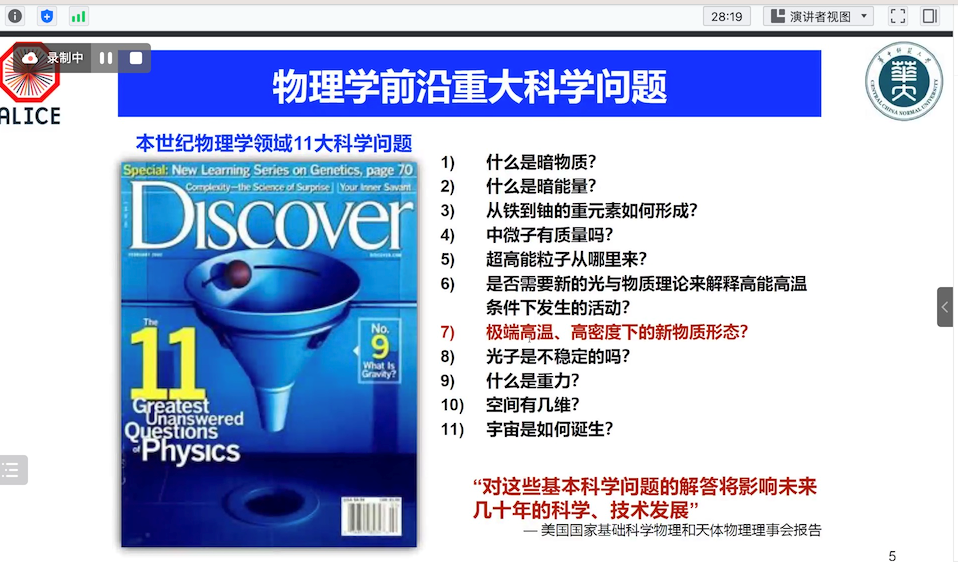 为迎接我校七十周年校庆,11月29日上午我院通过线上方式邀请华中师范大学周代翠教授,为我校物理系师生做了题为《欧洲CERN大型重离子对撞实验最新进展及展望》的学术报告。该报告由我校科学技术发展院、数学与物理学院联合举办,彭忻烨副教授主持,本院师生共计50余人参加。