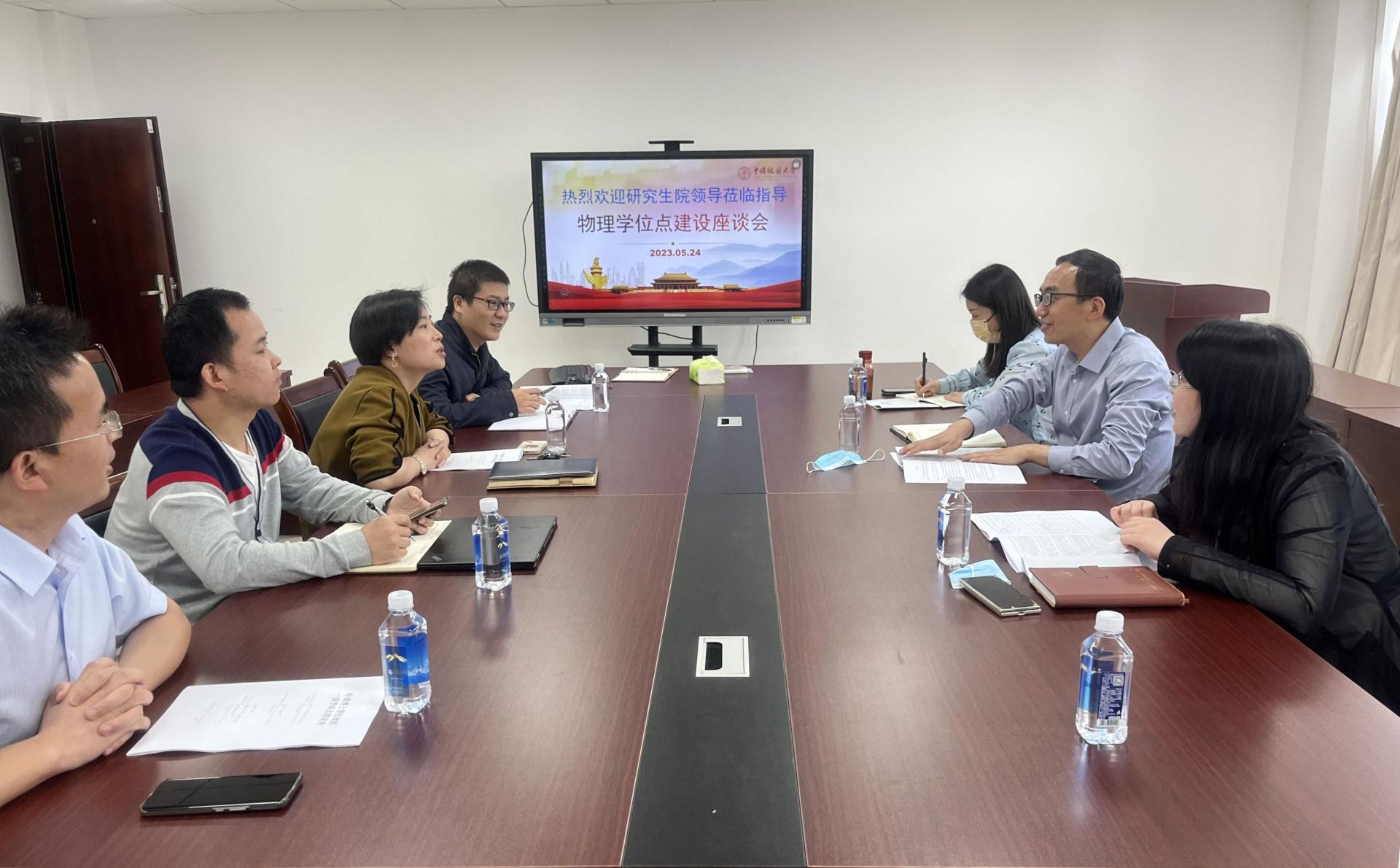 张保成首先介绍了学院研究生教育的总体情况,随后物理博士点申报负责人卢成就物理学一级学科博士点申报准备工作及其进展情况进行汇报,详细介绍了学位点人才培养、师资队伍、科学研究、支撑平台等方面的建设成果及存在的短板。与会人员围绕调研主题进行了深入的讨论和交流,提出申报工作改进意见和建议。