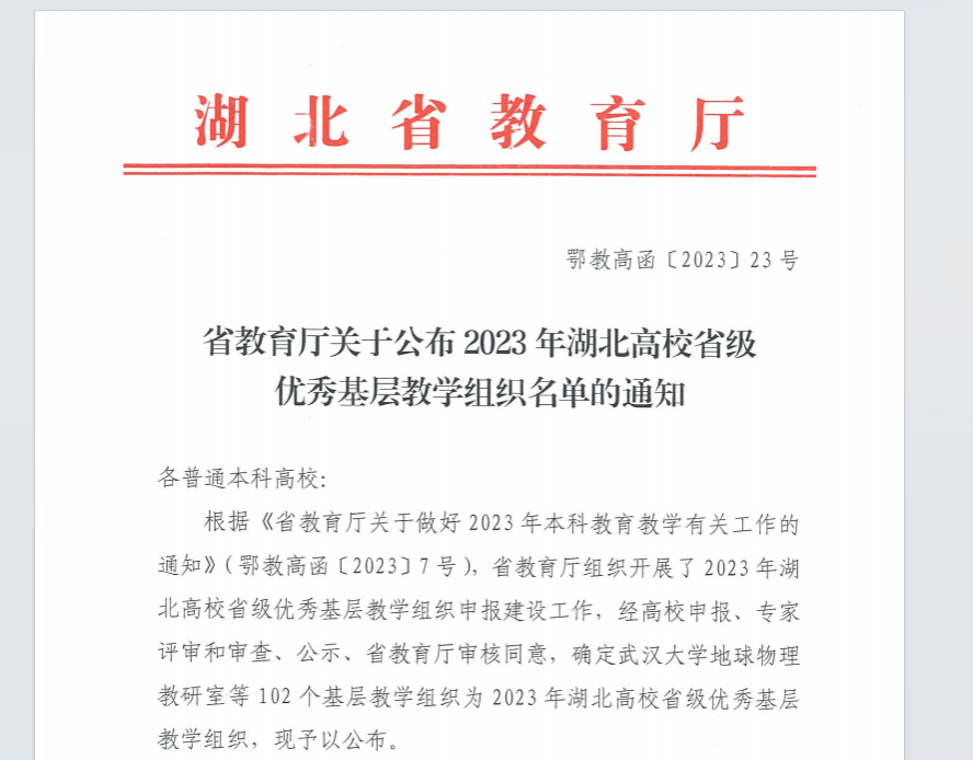近日,湖北省教育厅发布了《省教育厅关于公布2023年湖北高校省级优秀基层教学组织名单的通知》(鄂教高函﹝2023﹞7号),我院FMA大学公共数学课程组获评省级优秀基层教学组织。