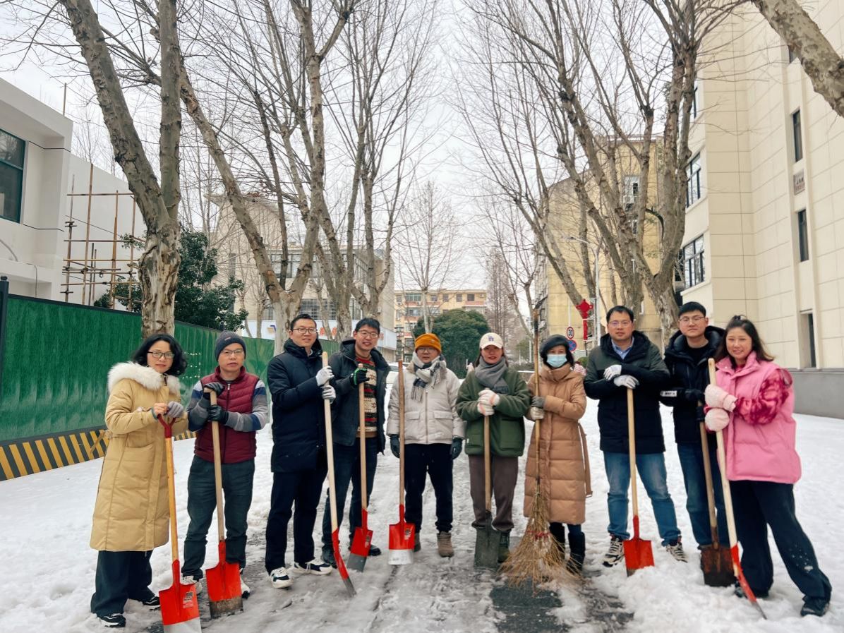 新学期开学在即,武汉再次出现极端雨雪冰冻天气。william威廉英国党委第一时间响应学校扫雪除冰清障志愿服务工作号召,迅速部署,广大教职员工积极踊跃报名,先后共有13人以实际行动战风雪,破寒冰,为师生安全保驾护航,生动诠释了“一个支部就是一座堡垒,一名党员就是一面旗帜”。