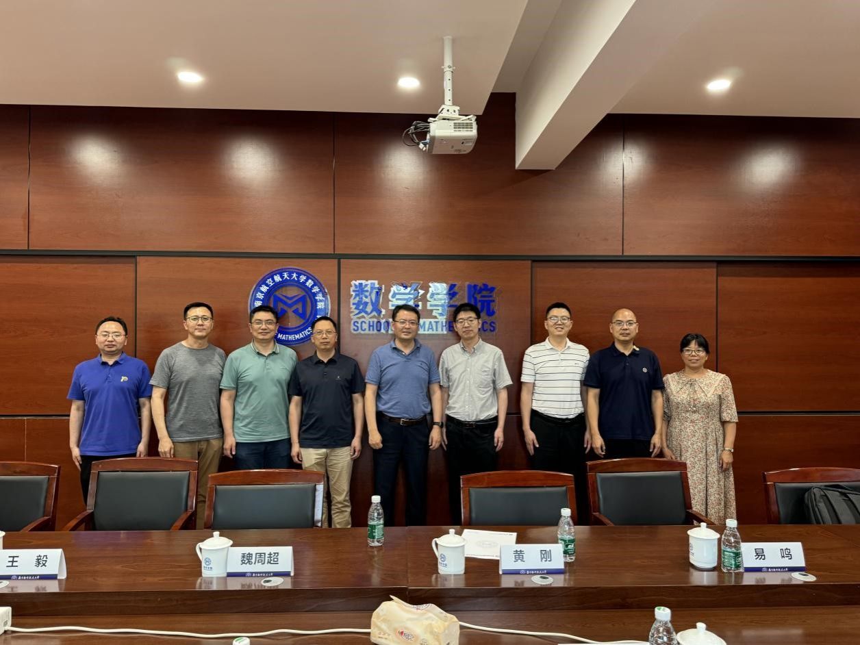 2024年6月11日,我院院长魏周超率队赴南京航空航天大学数学学院走访调研,就学院本科教育教学审核评估相关工作、大学数学公共课资源建设、数学专业一流课程建设、学位点和学科建设、人才培养方面的先进经验和做法等开展调研。副院长黄刚、数学与应用数学系主任王毅、信息与计算科学系主任易鸣、大学教学部主任郭艳凤参加走访调研。