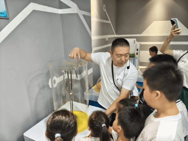 在电磁实验室,何开华教授化身“科学魔术师”,带领孩子们走进电磁的奇幻世界。雅各布天梯通电后,紫色电弧如火焰般逐级攀升,引得孩子们齐声惊呼:“好像会跳舞的闪电!”在音乐磁力线装置前,回形针在磁场作用下随音乐节奏“起舞”;辉光球中,蓝色电晕如星云般蔓延,当小手触碰玻璃表面,电流如灵蛇般追随指尖游走,孩子们兴奋地交换体验,感受电流的神奇。水力发电机与磁悬浮马达的联动展示,让孩子们直观理解了能量转换,“原来光能让小马达飞起来!”一个孩子指着悬浮转动的马达惊叹道。