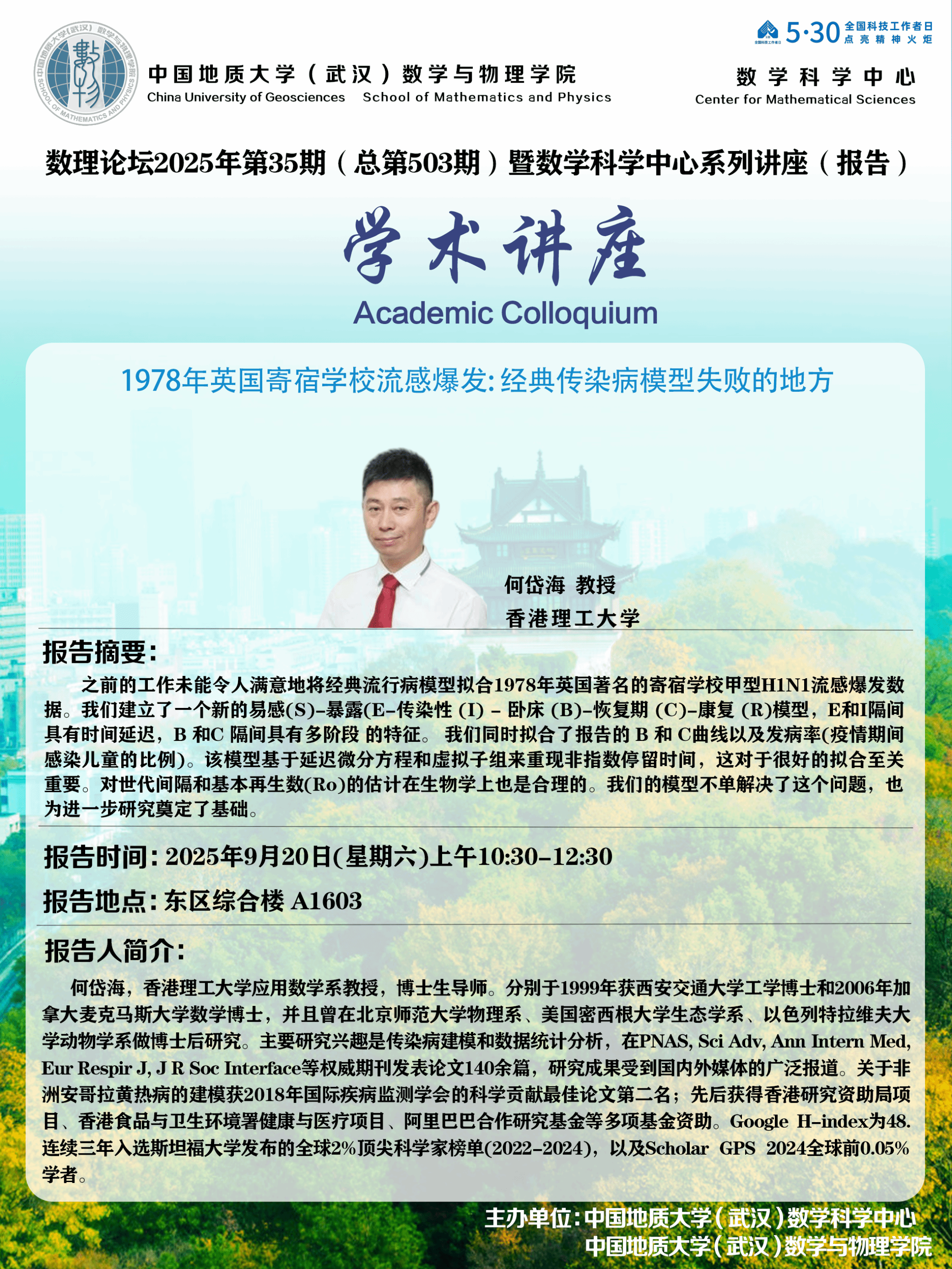 2025年9月20日何岱海教授学术讲座:1978年英国寄宿学校流感爆发:经典传染病模型失败的地方