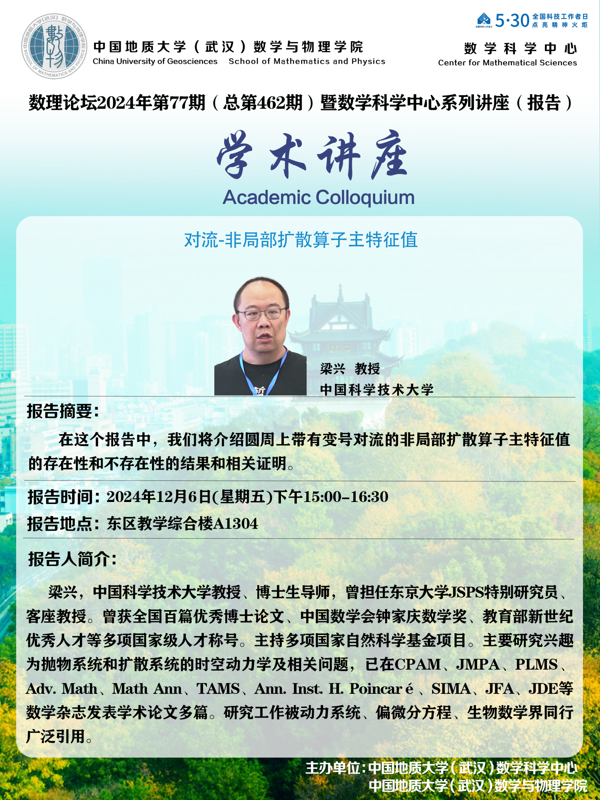 2024年12月6日梁兴教授学术讲座:对流-非局部扩散算子主特征值