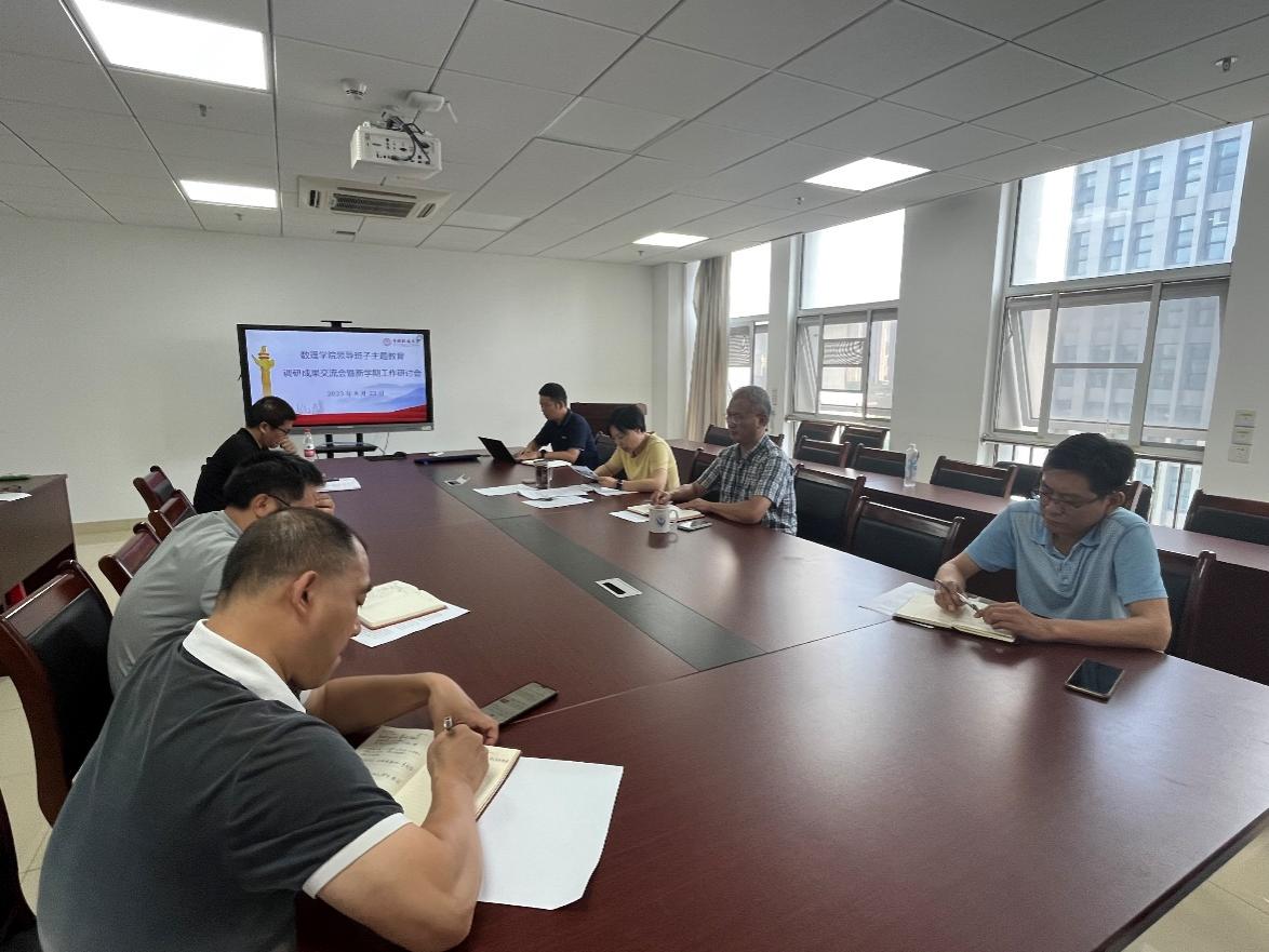 会前,学院党委理论学习中心组学习传达了学校领导班子主题教育调研成果交流会精神,重点学习了校党委书记黄晓玫所作的题为《以高质量党建引领保障学校事业高质量发展》和校长王焰新所作的题为《优化学科专业布局,加强一流学科建设》两个调研报告内容,分享了学校领导班子成员围绕强化党建引领保障加强党的建设和组织统战工作、落实“时代新人铸魂工程”、 推进产教融合强化培养就业全联动、构建高质量人才培养体系、推进有组织科技创新、优化多校区运行管理、大型仪器设备开放共享及管理绩效提升、落实“三重一大”决策制度执行情况、加强附属学校建设与发展等方面所做的调研成果汇报,与会人员结合学院实际情况进行了充分的学习体会交流和研讨。