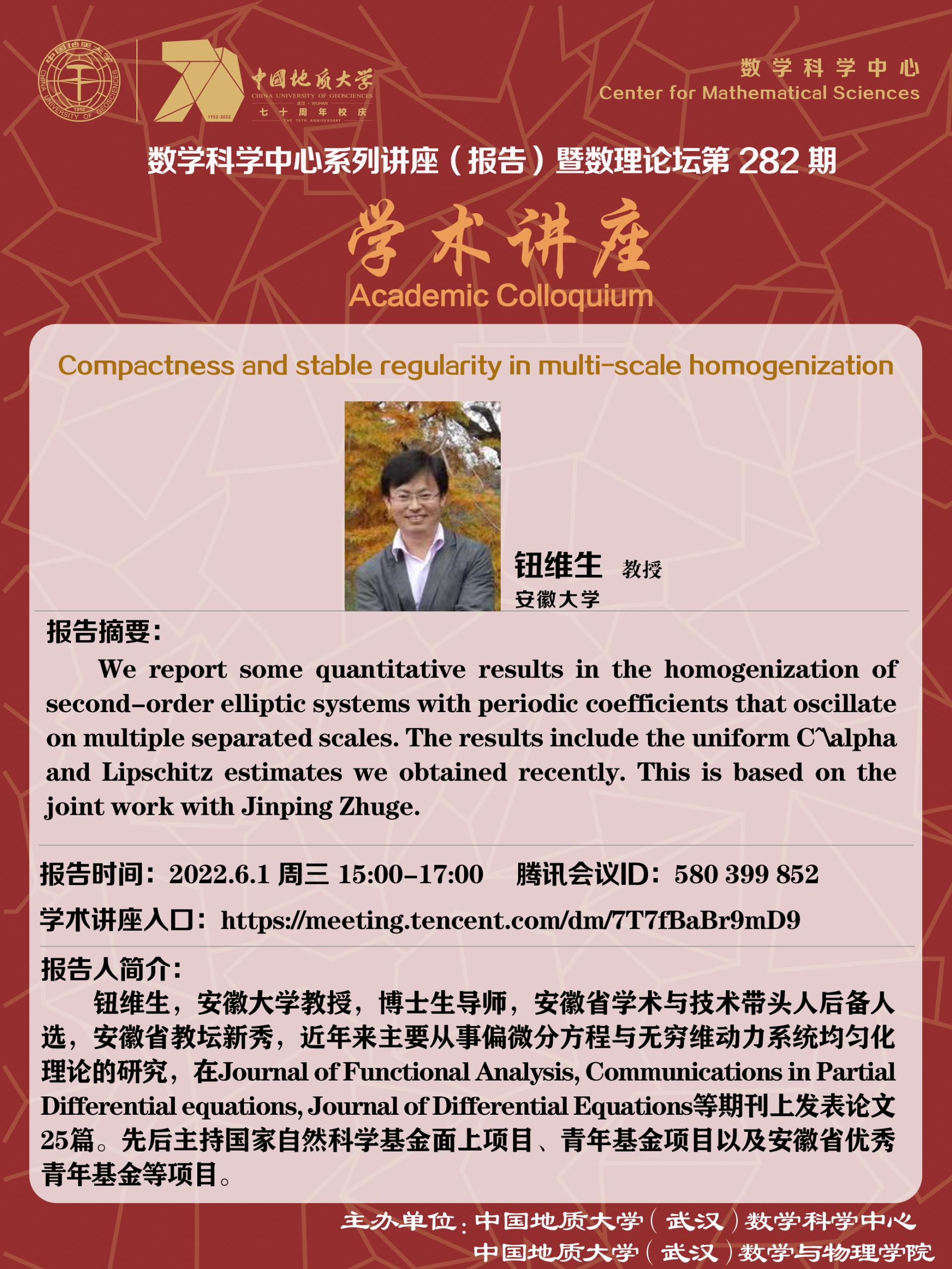 "数理论坛"第282期暨数学科学中心系列讲座(报告):Compactness and stable regularity in multi-scale homogenization