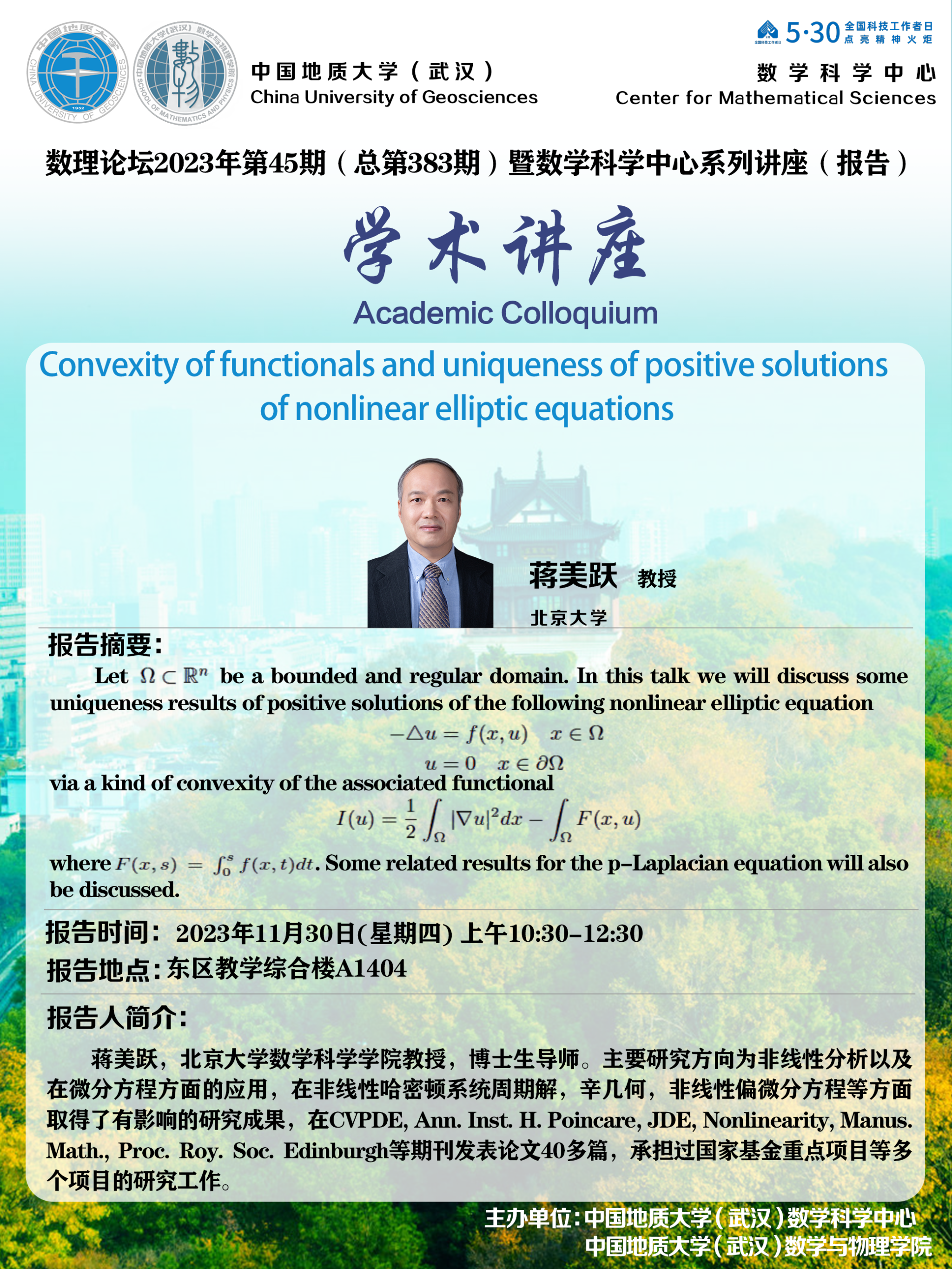 中国地质大学 数学科学中心 版权所有 地址:湖北省武汉市鲁磨路 388号 邮编:430074 鄂ICP备15021562号-1 鄂公网安备 42011102004169号